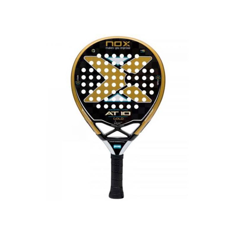 La Nox AT10 Gold es una pala que destaca por su control, elaborada con el marco de carbono consiguiendo un plus de resistencia y durabilidad ante golpeos. Las caras en fibra de vidrio ofrecen un toque flexible, llegando a golpeos imposibles,