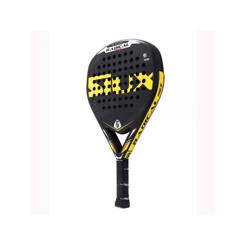 Esta Siux Radical Pro 3 cuenta con un diseño espectacular en color negro, amarillo y algún detalle en rojo. El acabado es mate para conseguir un mejor rendimiento en golpes de derecha y bandejas.