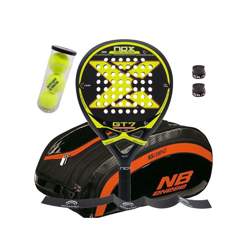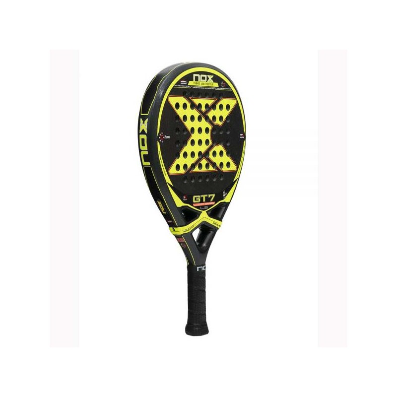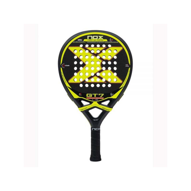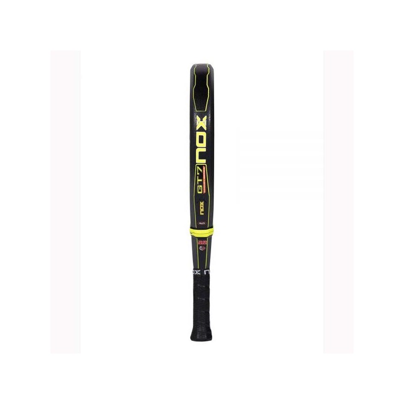 La pala Nox GT7 L5 ofrece un diseño con forma redonda que la hace muy fácil y cómoda de manejar, pesa entre 360-375 gramos y el perfil estándar con 38 milímetros.