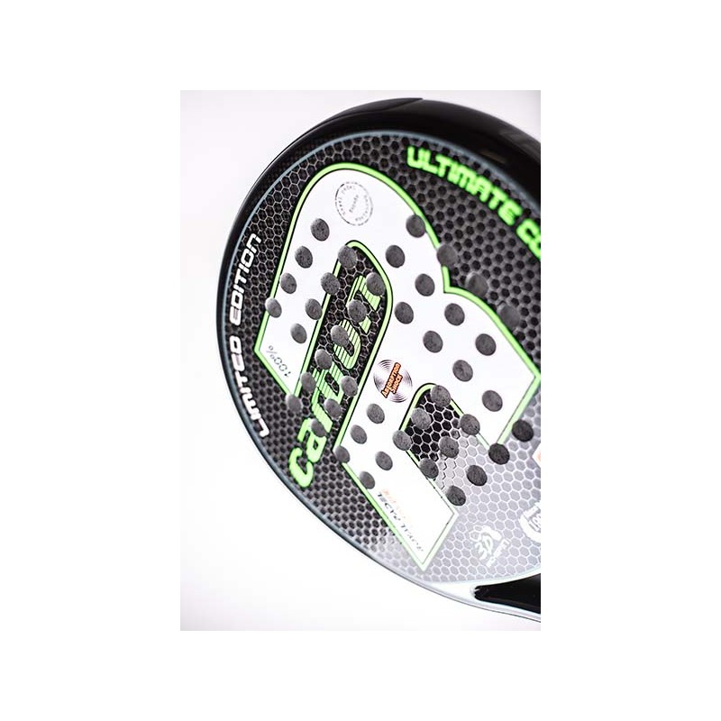 Compuesta por un núcleo de Polietileno con tejido 100% Carbono. Un marco 100% carbono que da como resultado una pala muy resistente y duradera.