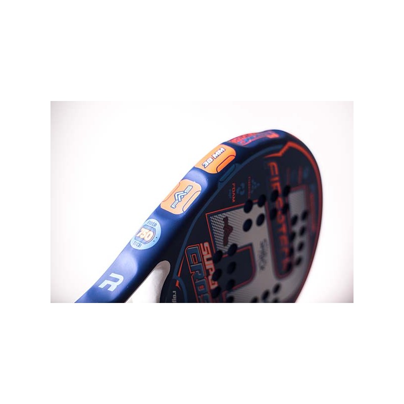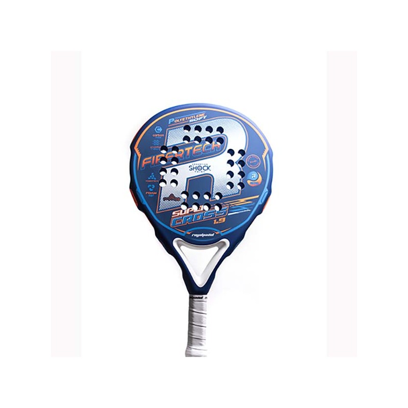 La pala Supercross 2019, es fabricada con fibra de vidrio en ambas caras, para ofrecer mayor flexibilidad, que te permitirá realizar golpeos con mayor confort, con un núcleo de goma ultra blanda de polietileno, que proporciona una rápida recuperación, garantizando una fácil adaptación, por ofrecer sensaciones de suavidad. Es de forma de lágrima, con un perfil de 38mm y un peso que varía entre los 360 a 390 gramos, con una gran absorción de impactos, que reduce las vibraciones, evitando lesiones en las muñecas y codos.