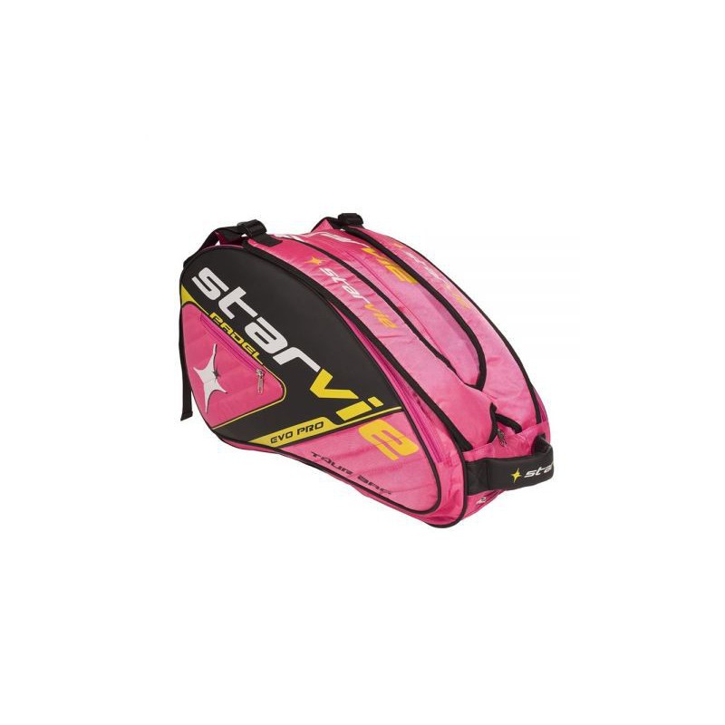 El paletero Star Vie Evo Pro Rosa es un paletero de gran capacidad y un diseño excelente para las jugadoras de pádel que necestian transportar su equipación. Fabricado en materiales de calidad y acolchados para proteger las palas. Está compuesto por: